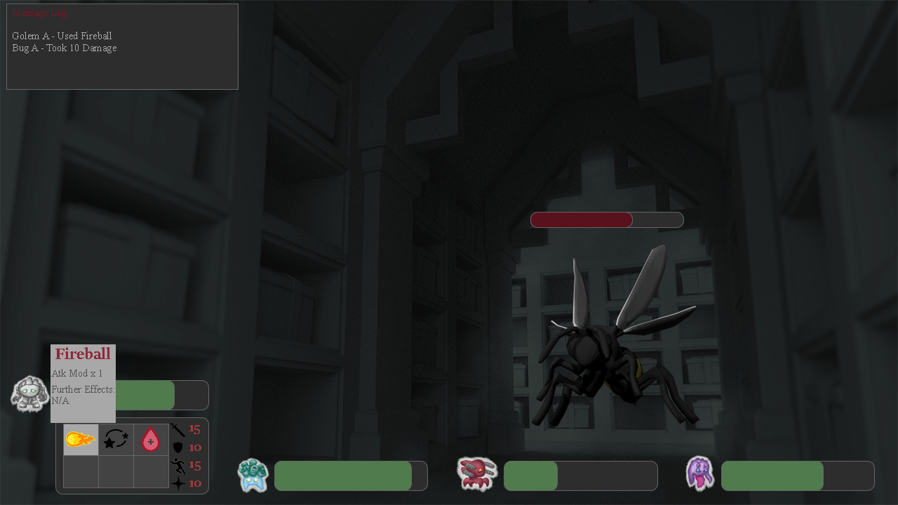Rouge-Lite is a game in which you play as a magical being that controls four golems within a multi-leveled dungeon. This multi-leveled dungeon has different atmospheres the farther down you travel. Our main audience consists of 20-30 year old’s, due to the fact that all levels have an aspect of killing bugs and a slight level of gore by using the dead bugs parts to create makeup products.